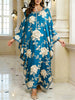 Women's Elegant Artistic Pattern Casual Loose Batwing Sleeve Long Plus Size Dress