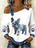 Women's Lovely French Bulldog Pattern Denim Patchwork Top