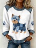 Women's Lovely Yorkshire Terrier Pattern Denim Patchwork Waffle Sweatshirt